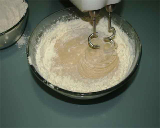 - Añade la harina y amasa hasta tener una masa consistente pero no dura.