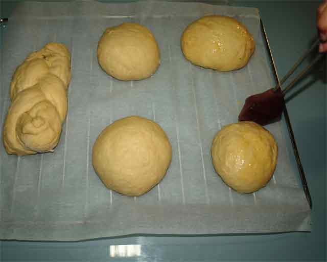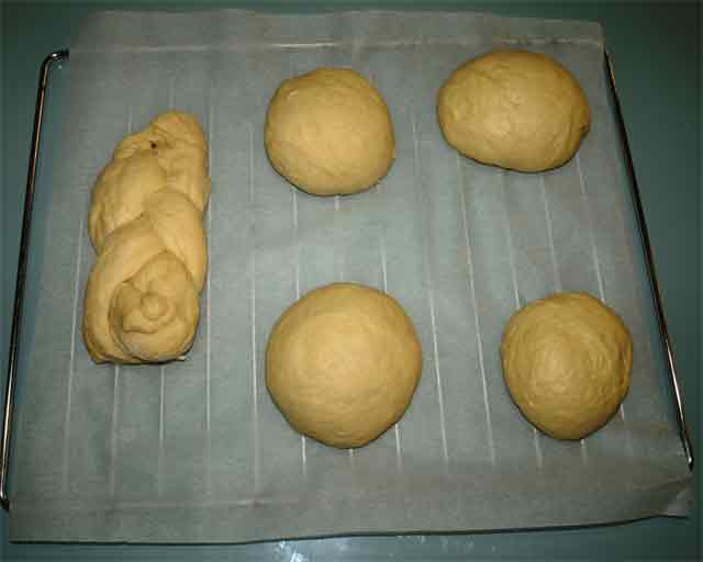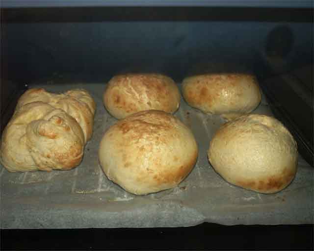 Dificultad: Baja -:- Duración: 1 hora (más 3 horas y 40 minutos de reposo y entre 30 y 40 minutos de horneado) -:- Ración: 5 panes